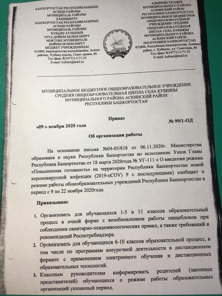 Методические рекомендации об организации работы общеобразовательных учреждений Республики Башкортостан в 2020–2021 учебном году