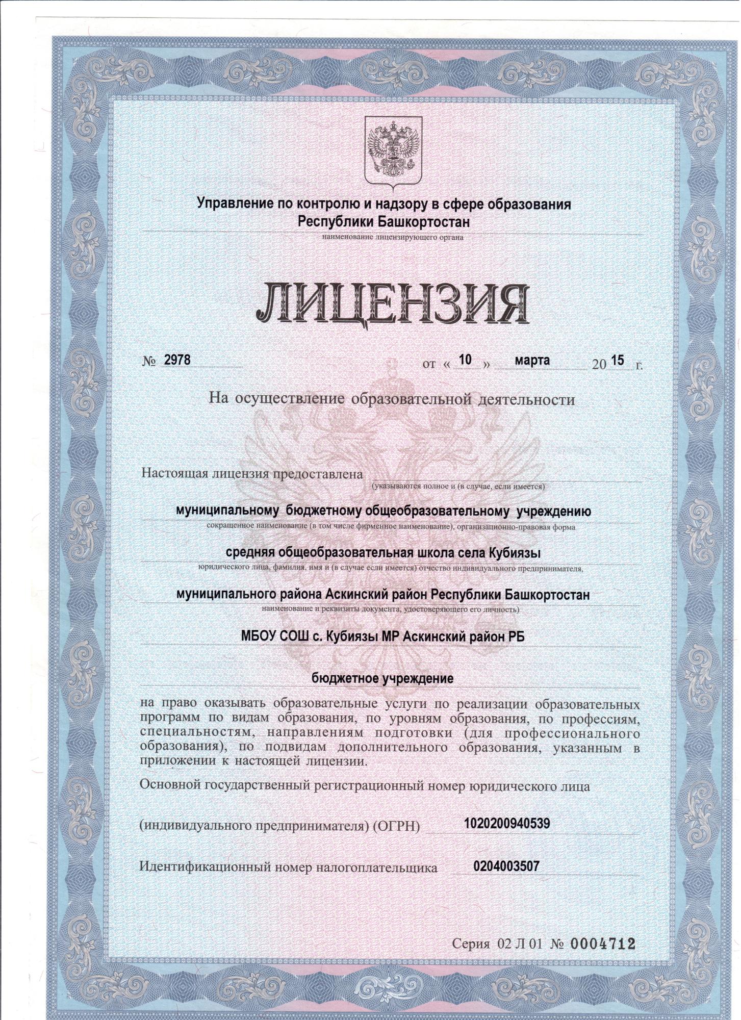 Юридический адрес: 452890, Российская Федерация, Республика Башкортостан, Аскинский район, с.Кубиязы, ул. Советская 60.